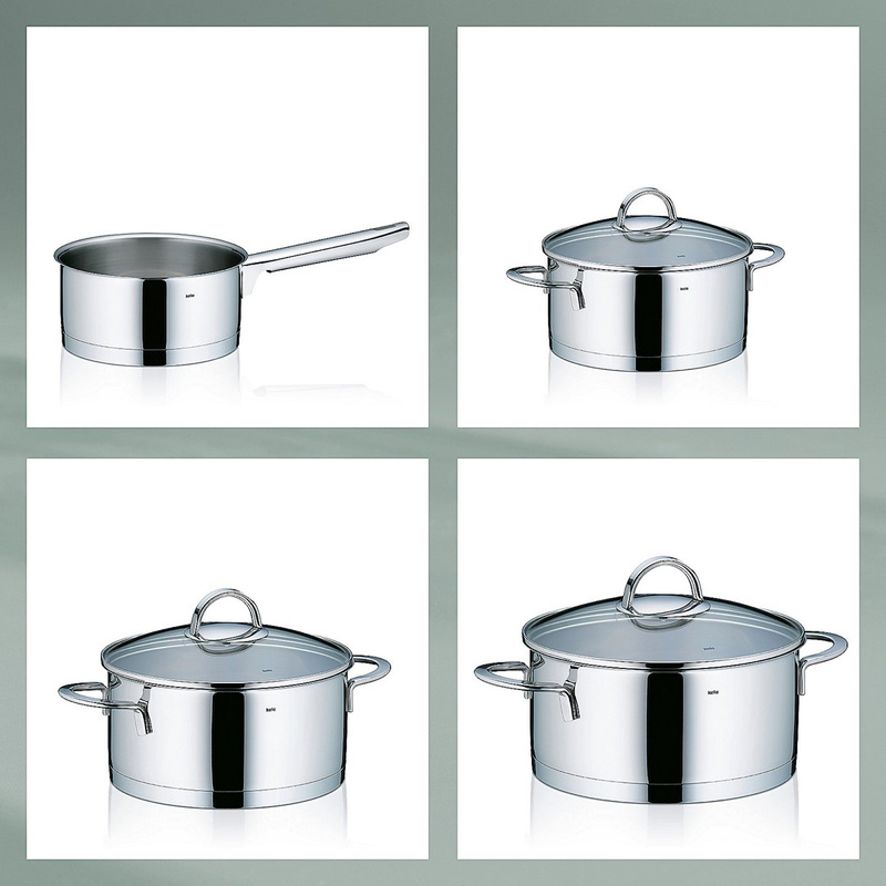 - w komplecie 3 garnki z pokrywkami oraz rondelek,