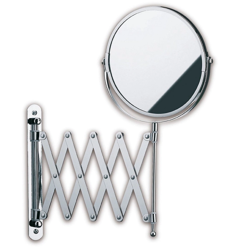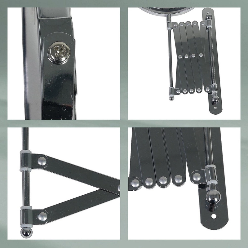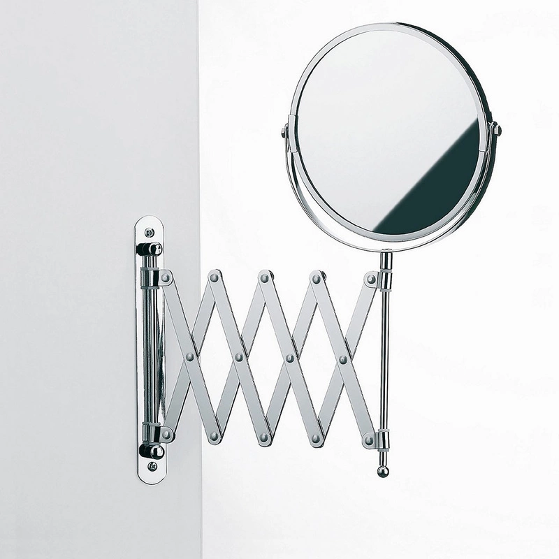 Lustro ścienne Avita Kela: - jest dwustronne, - jedna strona powiększa 5-krotnie, - posiada składane ramię - dł. 9,5 x 47 cm, - jest obrotowe, - wykonane z chromowanego metalu, - do montażu na ścianie.