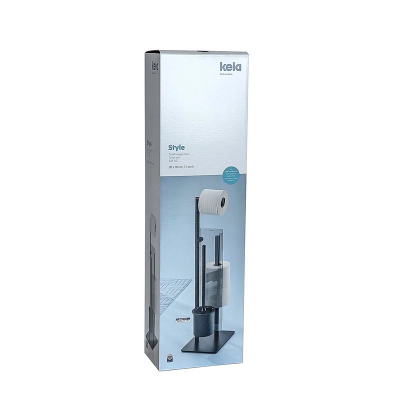 Kela - Stojak WC +szczotka i zasobnik czarny Style
