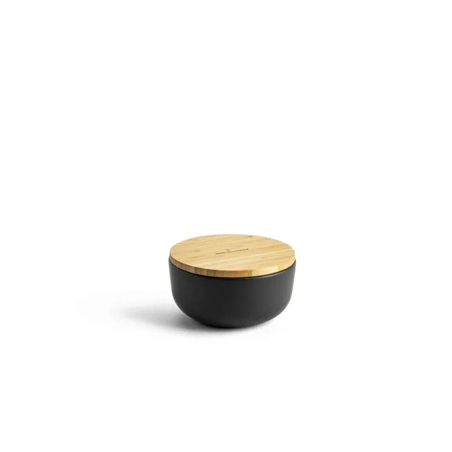 Czarna matowa ceramika w połączeniu z naturalnym drewnem pokrywki tworzy harmonijną i estetyczną kompozycję, która zachwyci Twoich gości. Miseczka idealnie nadaje się do serwowania różnorodnych potraw, od zup i sałatek po desery.