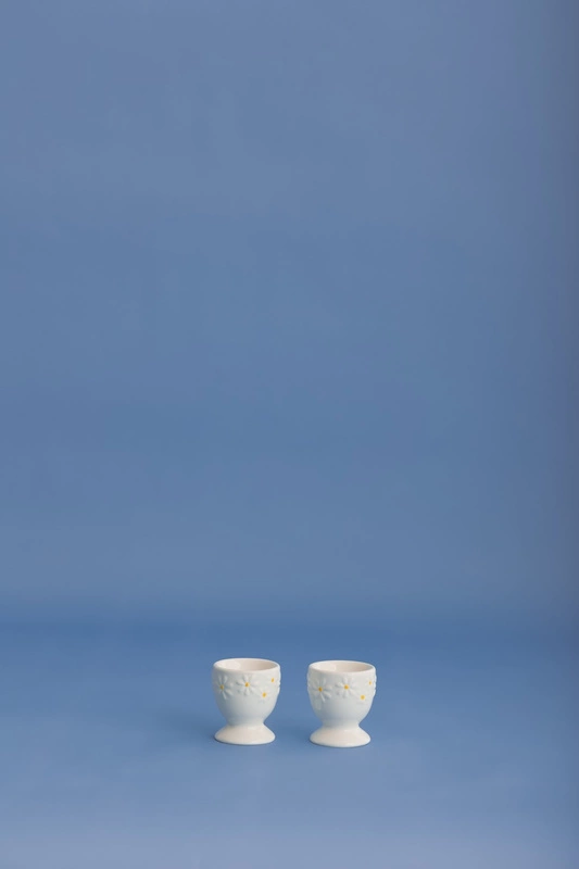 Zestaw 2 kieliszków na jajka Daisy Price & Kensington: - komplet wykonany z ceramiki, - dekorowany w stokrotki - elementy malowane ręcznie, - nadaje się do mikrofalówki, - można myć je w zmywarce.