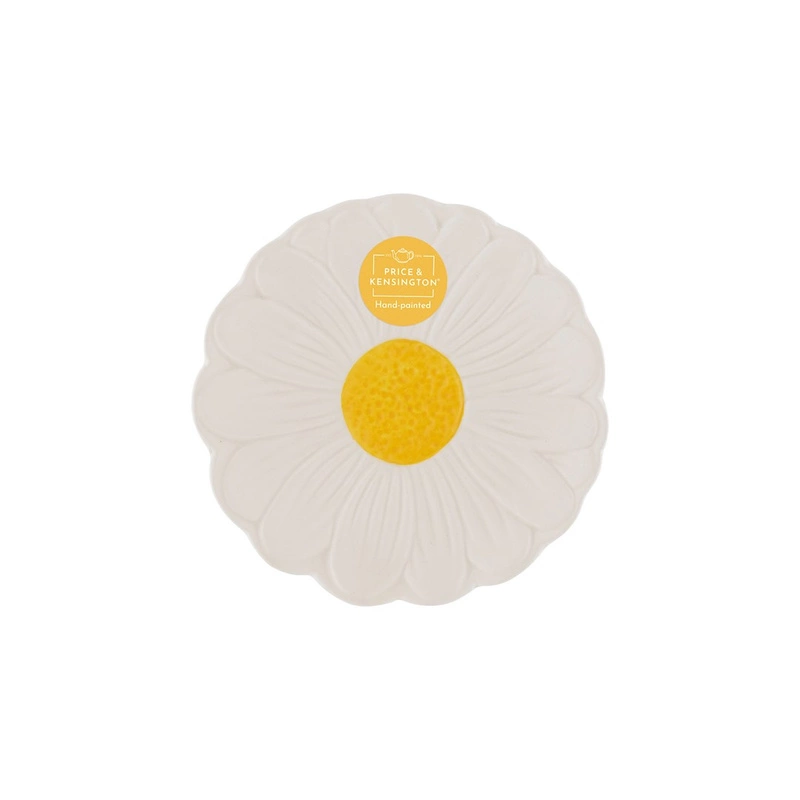 Podstawka Daisy Price & Kensington: - np. pod łyżkę, - wykonana z ceramiki, - ma kształt stokrotki - środek malowany ręcznie, - nadaje się do mikrofalówki, - można myć ją w zmywarce.