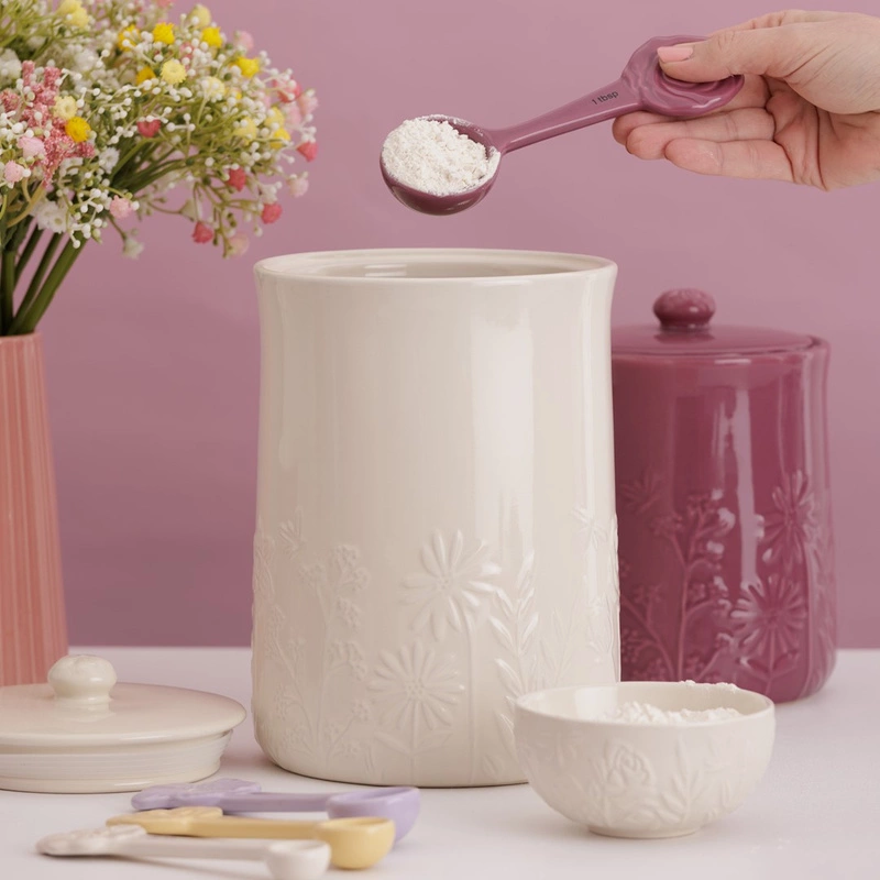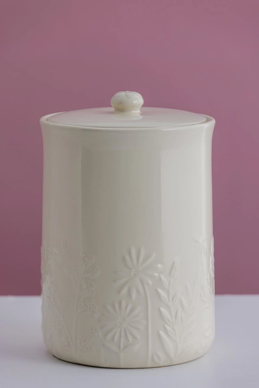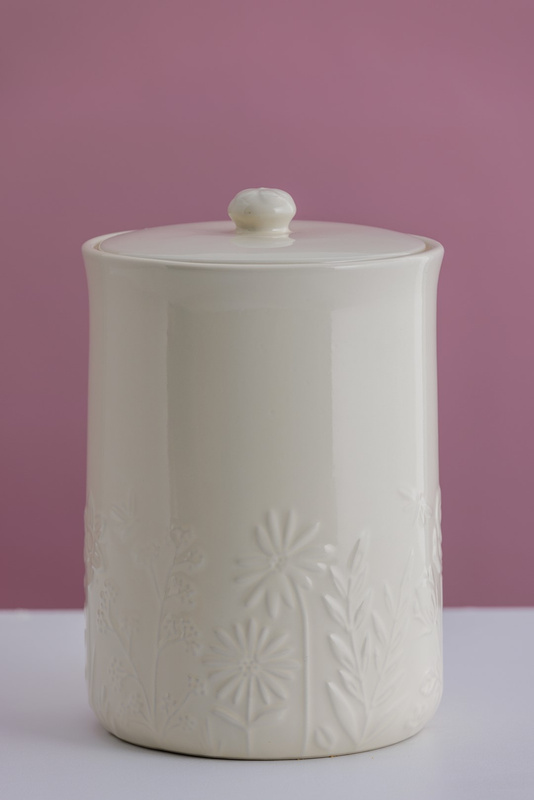 Pojemnik 2,5 l In the Meadow Mason Cash: - pojemność - 2,5 l, - wykonany z kamionki, - dekoruje go wypukły wzór w róże, - przeznaczony do mycia ręcznego.