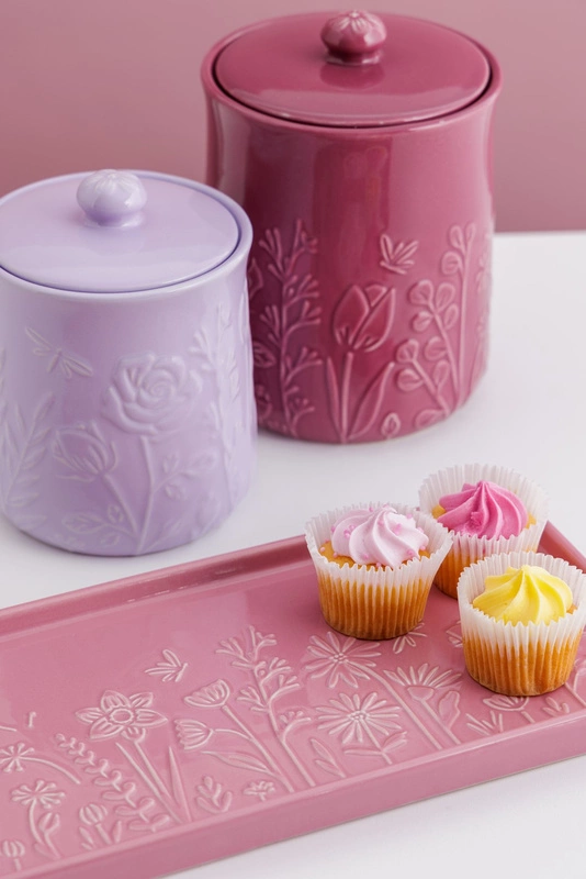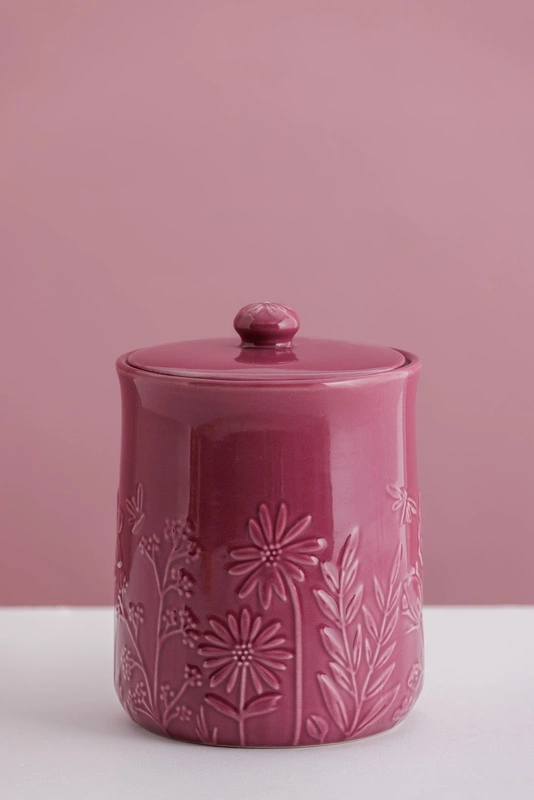 Pojemnik 1,85 l In the Meadow Mason Cash: - pojemność - 1,85 l, - wykonany z kamionki, - dekoruje go wypukły wzór w róże, - przeznaczony do mycia ręcznego.