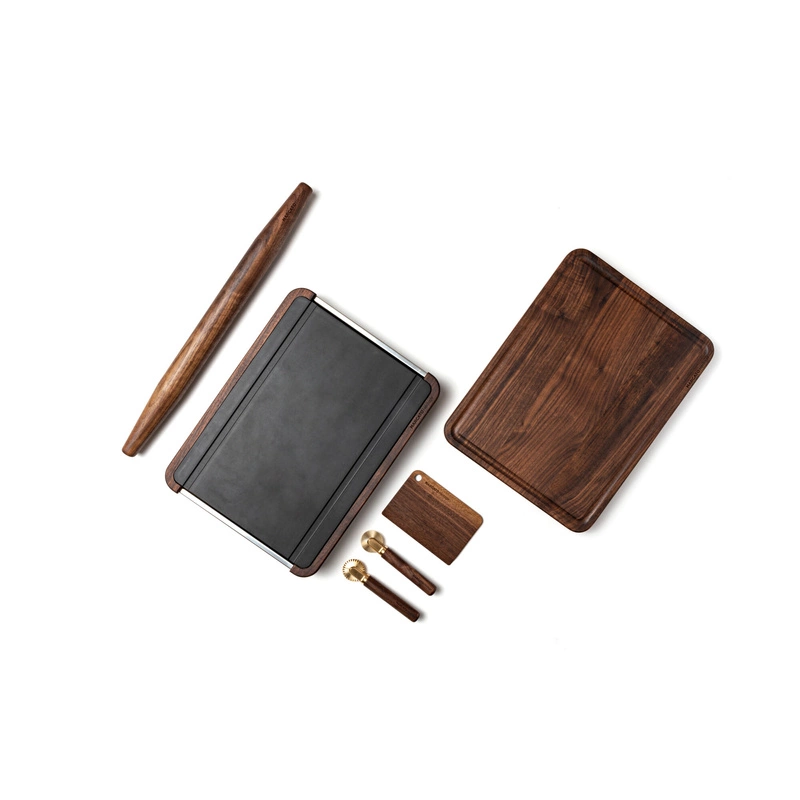 Materiały składowe (lite drewno orzechowe, stal nierdzewna i kompozyt papierowy) sprawiają, że jest ona wyjątkowo elegancka, praktyczna i trwała.