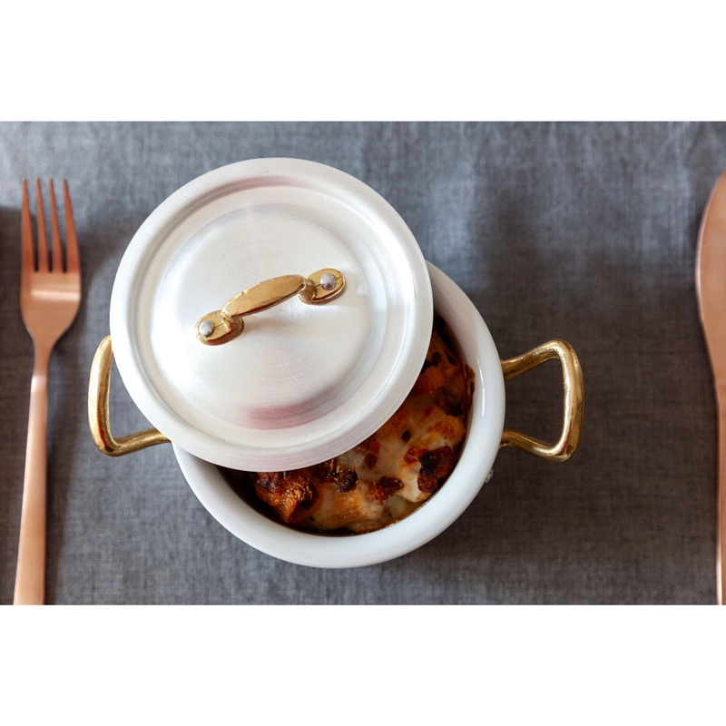Elegancki miniaturowy zestaw naczyń kuchennych do gotowania i serwowania.