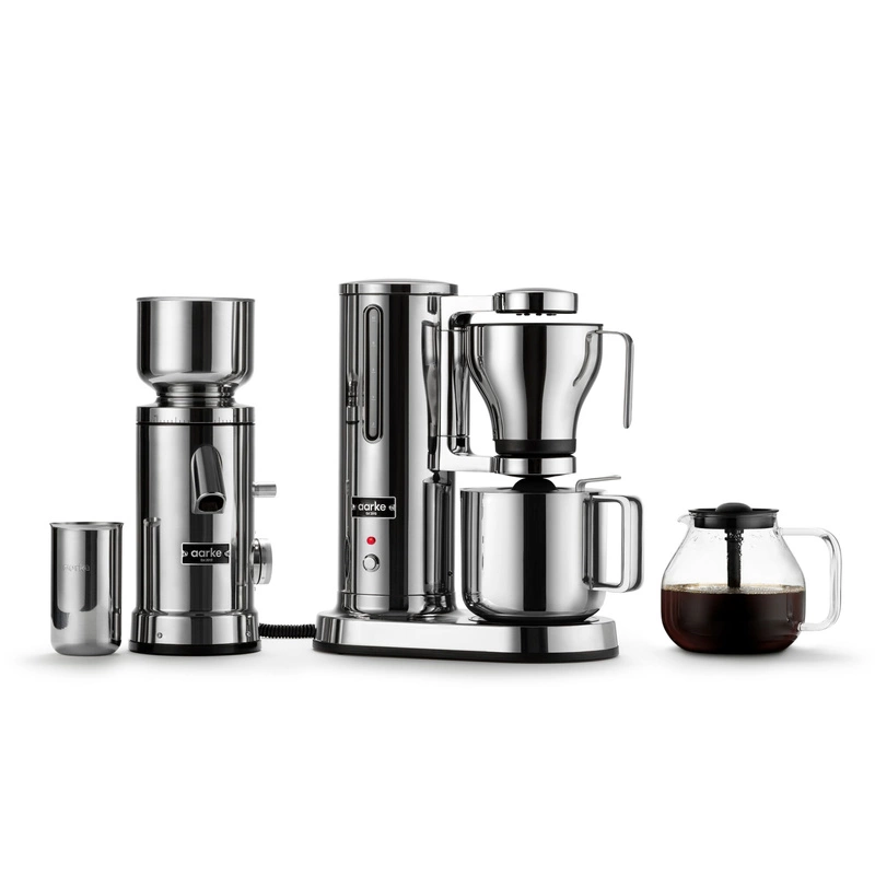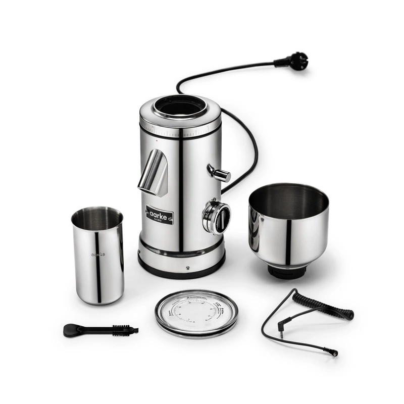 W zestawieMłynek do kawy AarkePojemnik na fusyInstrukcja mielenia na pokrywcePrzewód do podłączenia ekspresu do kawy AarkeSzczotka do czyszczenia żarenSzczotka do czyszczeniaInstrukcja obsługiŚciereczka do czyszczenia Aarke