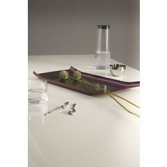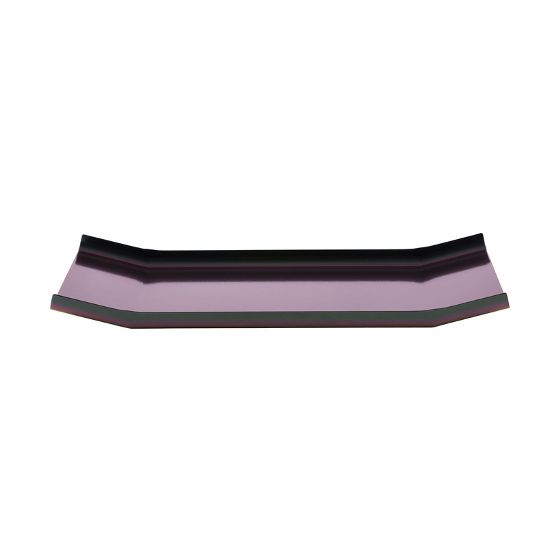 W zależności od perspektywy widza następuje dynamiczne przejście od zieleni do fioletu, które w zaskakujący sposób podkreśla fałdy i krzywizny tacy.