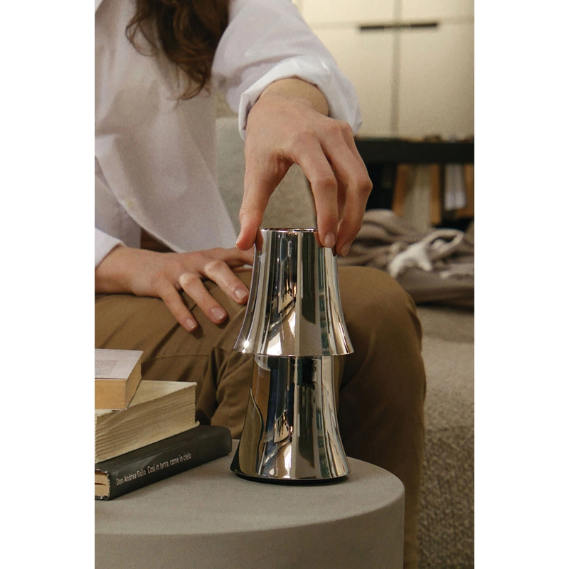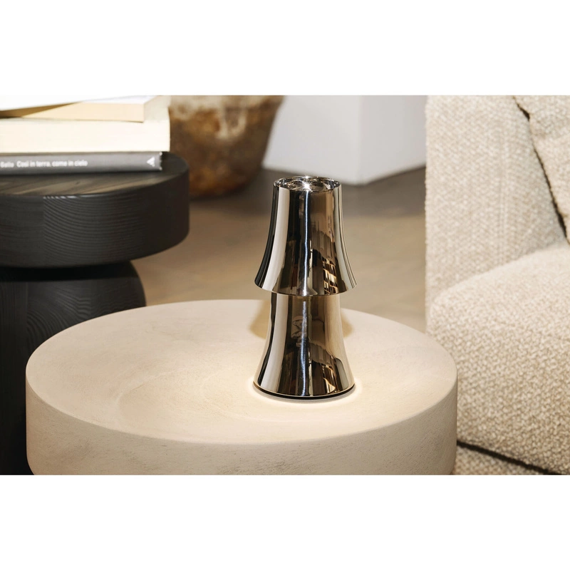 Polerowane wykończenie odbija otaczającą przestrzeń, podkreślając elegancję lampy.