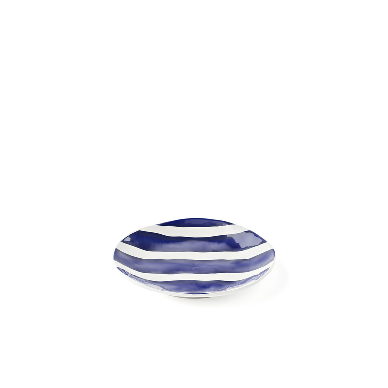 Kolorze niebieskim i białym z pociągnięciami pędzla, które przywodzą na myśl ręcznie robione piękno, wrażenie wzmocnione nieregularnym kształtem artykułów.