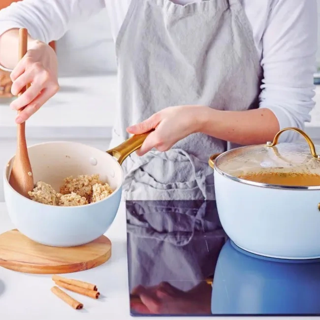 Wprowadź kolor, komfort i jakość do codziennego gotowania z zestawem 10-elementowym GreenPan  light blue. Ten komplet naczyń kuchennych łączy elegancki design z innowacyjną technologią ceramicznej powłoki Thermolon™, oferując zdrowe gotowanie bez kompromisów.