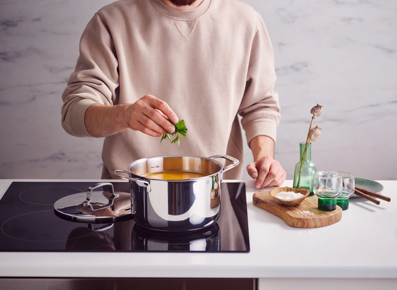 - Zamknięta 3-warstwowa podstawa eliminuje gorące punkty i zapewnia równomierne gotowanie potraw