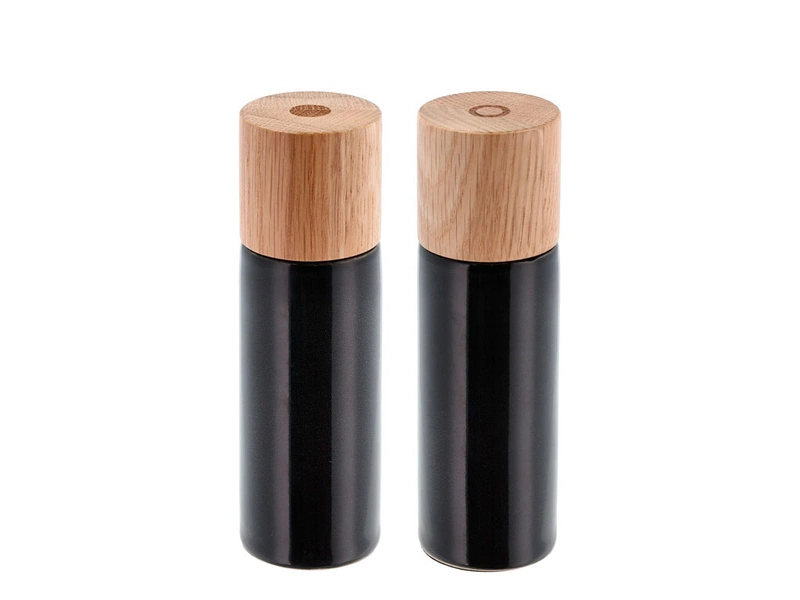 Zestaw młynków do soli i pieprzu z błyszczącej glazurowanej kamionki oraz z drewna dębowego. Piękny kolor dobrze komponuje się z innymi produktami z kolorowej gamy kamionkowej BITZ, gdzie reaktywne szkliwo nadaje każdemu produktowi niepowtarzalny wygląd.