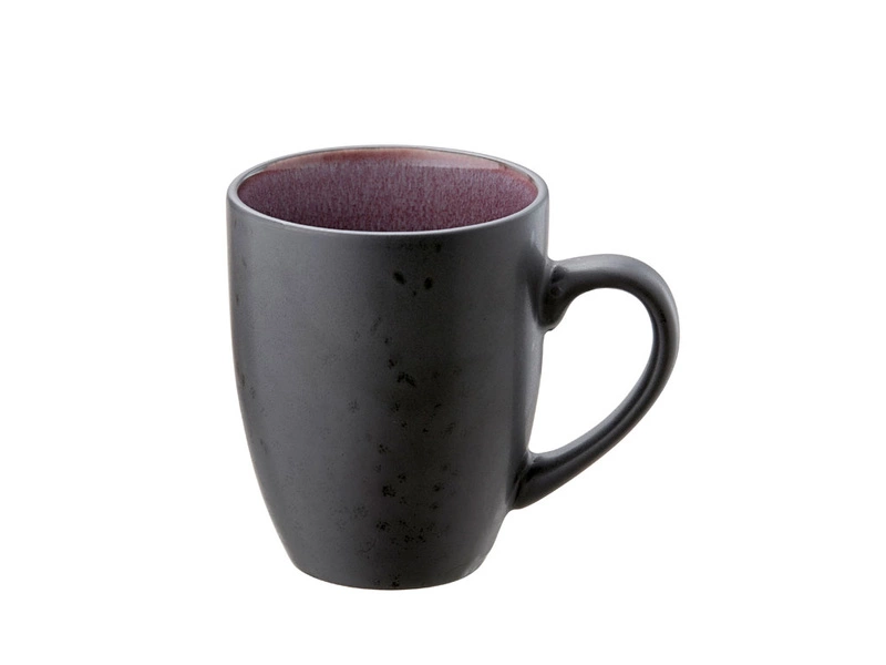 Zestaw kubków z uchwytem wykonany z wytrzymałej kamionki z matową czarną powierzchnią zewnętrzną i 4 błyszczącymi glazurami wewnątrz. Kubek ma 10 cm wysokości i ma pojemność 300ml.
