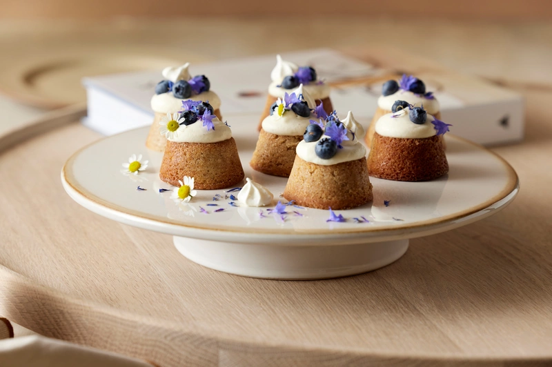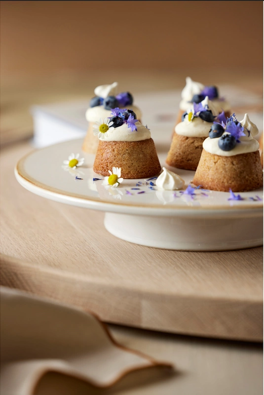 Wykonana z ekologicznej kamionki o pięknym kremowym szkliwieniu. Posiada zgrabną nóżkę, więc na podwyższeniu, doskonale będą się prezentować wszelakie wypieki, ciasta, babeczki.