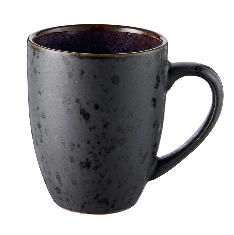 Kubek z uchem marki Bitz, o pojemności 300 ml, wykonany z kamionki wykończonej na zewnątrz czarną, matową glazurą, a od środka błyszczącą, w kolorze granatu. Duża pojemność, poręczny uchwyt, wysoka jakość wykonania i piękna kolorystyka sprawią, że poranna kawa, herbata czy gorąca czekolada, będą prezentować się wyjątkowo i tak samo smakować.