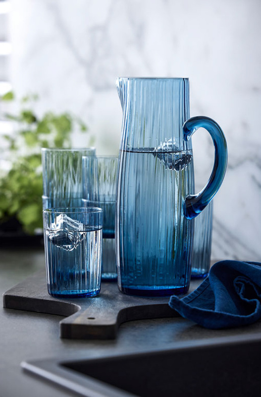 Szklanki występują również w innych kolorach; bursztynowym, zielonym różowym i przezroczystym, w kolekcji tej dostępny jest również dzbanek.