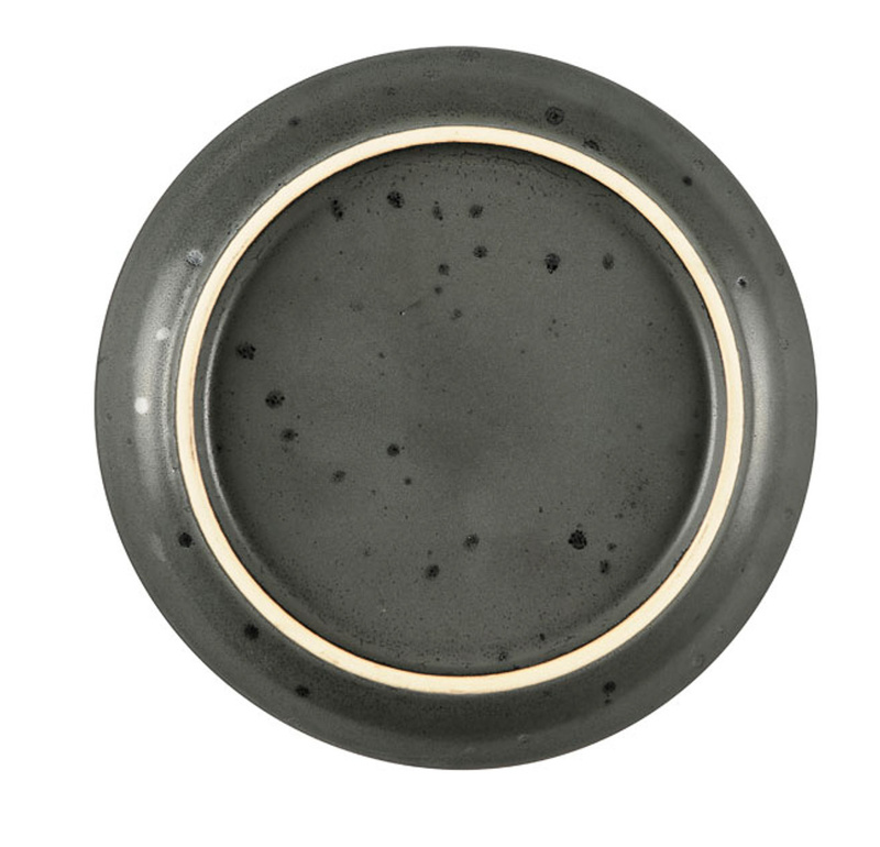 Talerz BITZ wykonany z matowej czarnej/błyszczącej bursztynowej kamionki, o średnicy 17 cm.