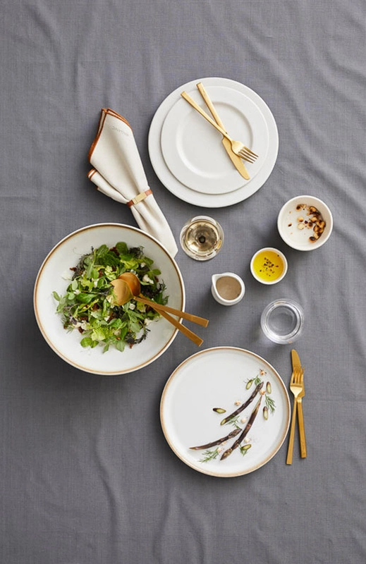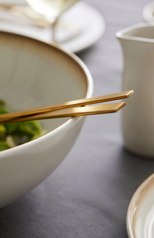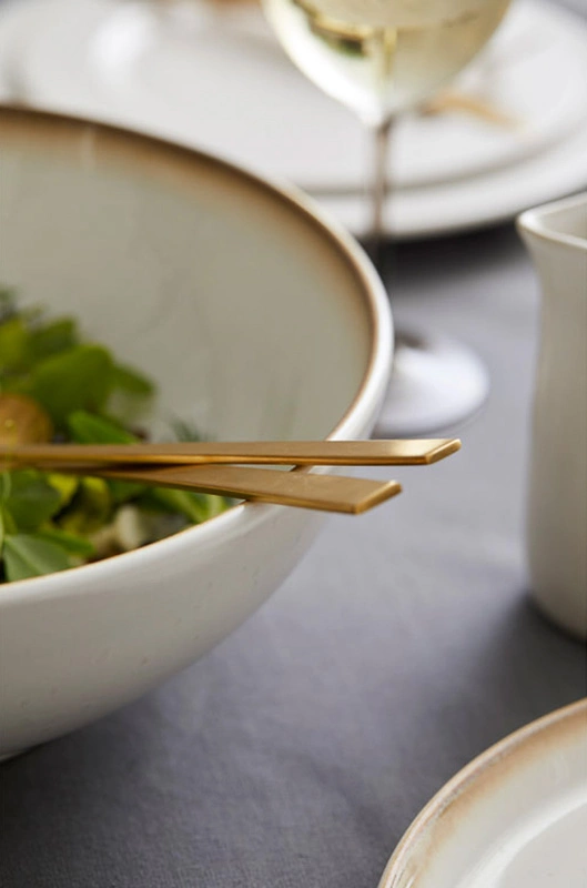 Zestaw eleganskich łyżek do sałaty w kolorze matowego mosiądzu o długości 24cm.
