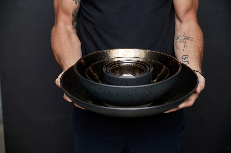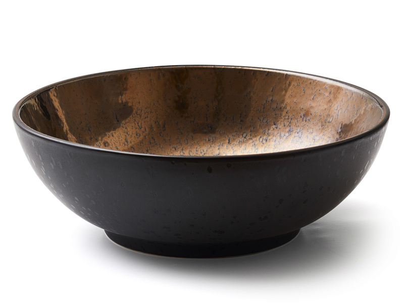 Matowe, czarne wykończenie na zewnątrz pięknie łączy się z błyszczącym, brązowym szkliwieniem w środku misy.