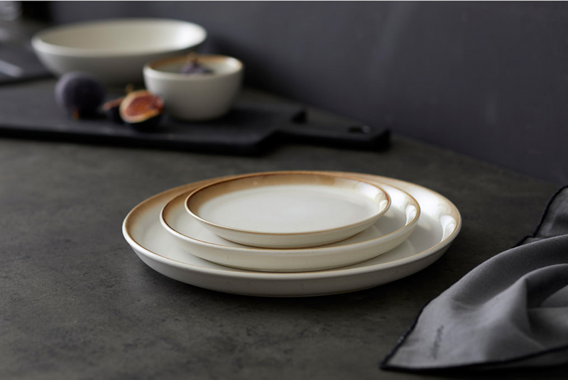 Talerz BITZ wykonany z gresu w kolorze matowego i błyszczącego kremu o średnicy 21 cm.