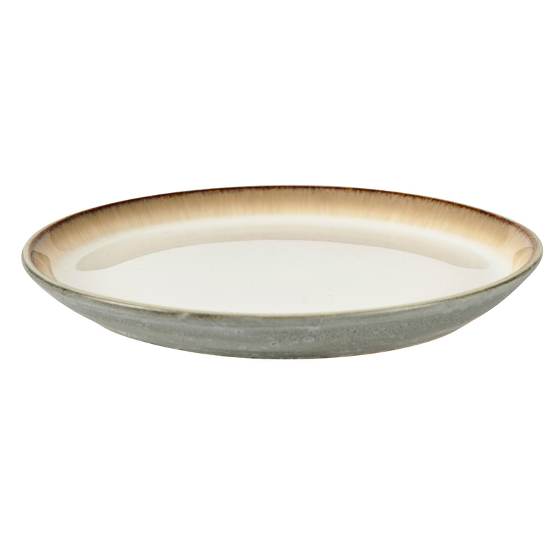 Talerz BITZ wykonany z gresu w kolorze matowej szarości i błyszczącego kremu o średnicy 17 cm.