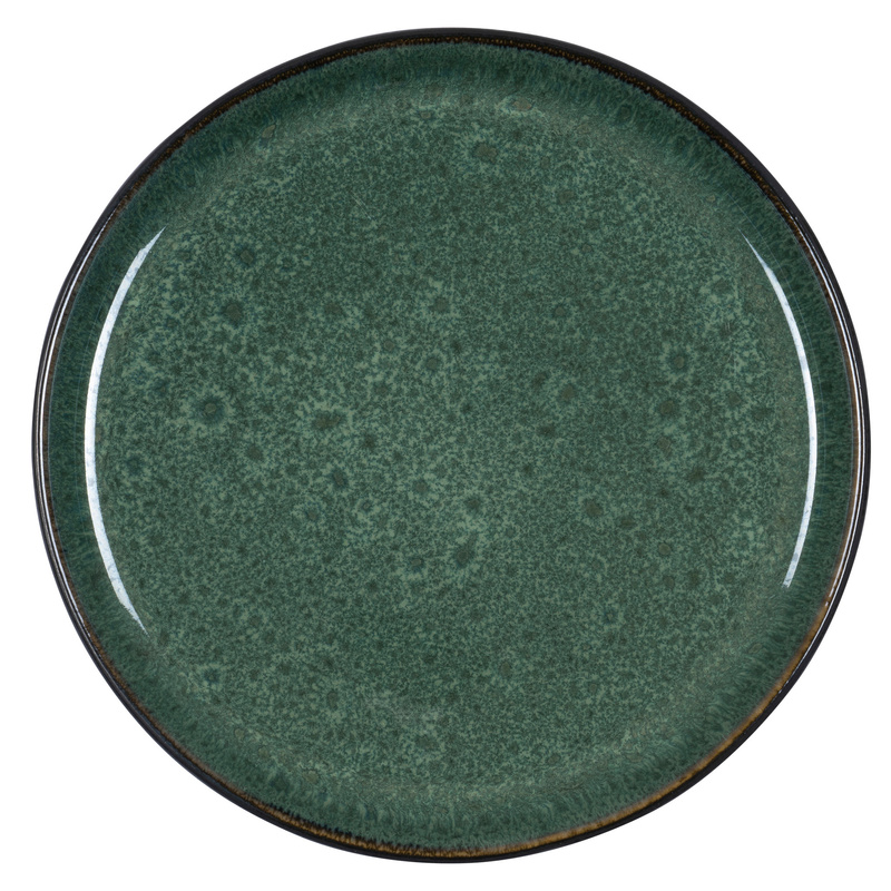 Talerz BITZ wykonany z gresu w kolorze matowej czerni i błyszczącej zieleni o średnicy 21 cm.