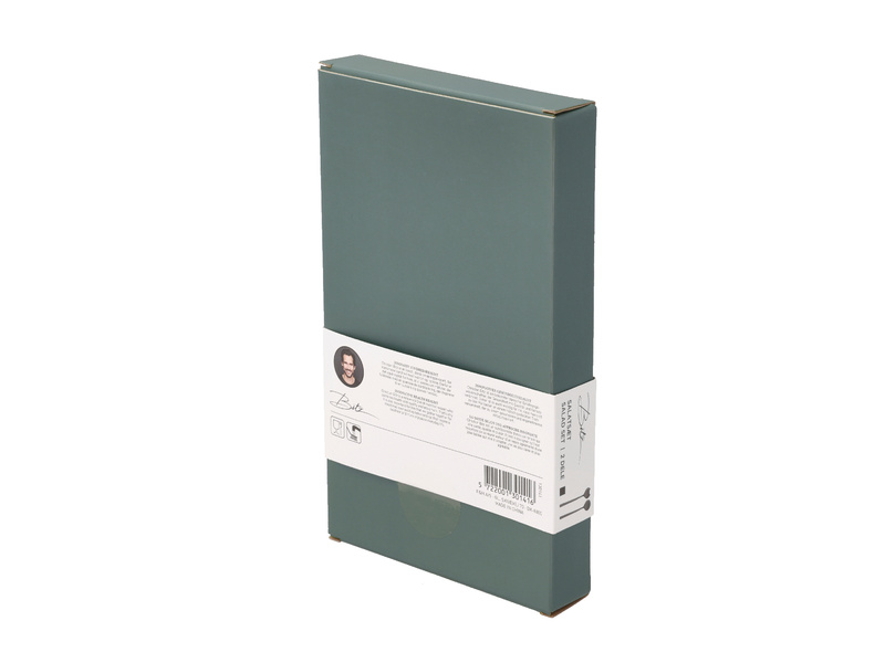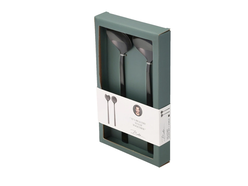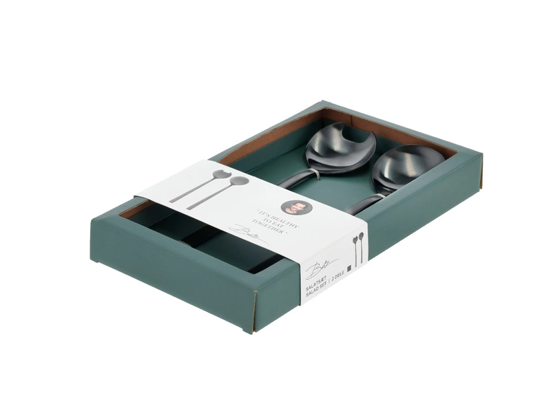 Zestaw eleganckich łyżek do sałaty w kolorze matowej czerni o długości 24 cm.