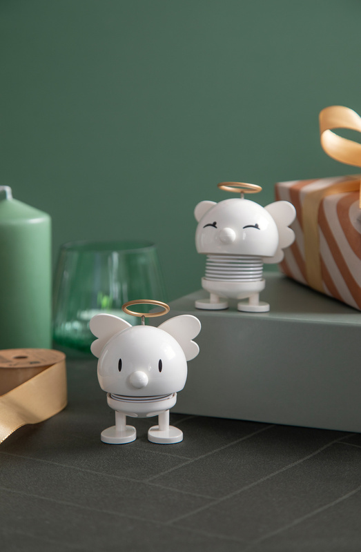 Ta kompaktowa figurka aniołka z aureolą Hoptimist dostępna jest w różnych wersjach kolorystycznych oraz materiałowych. To idealne uzupełnienie wystroju pomieszczenia, ale także pozytywny partner pracy, spędzający czas na naszym biurku.