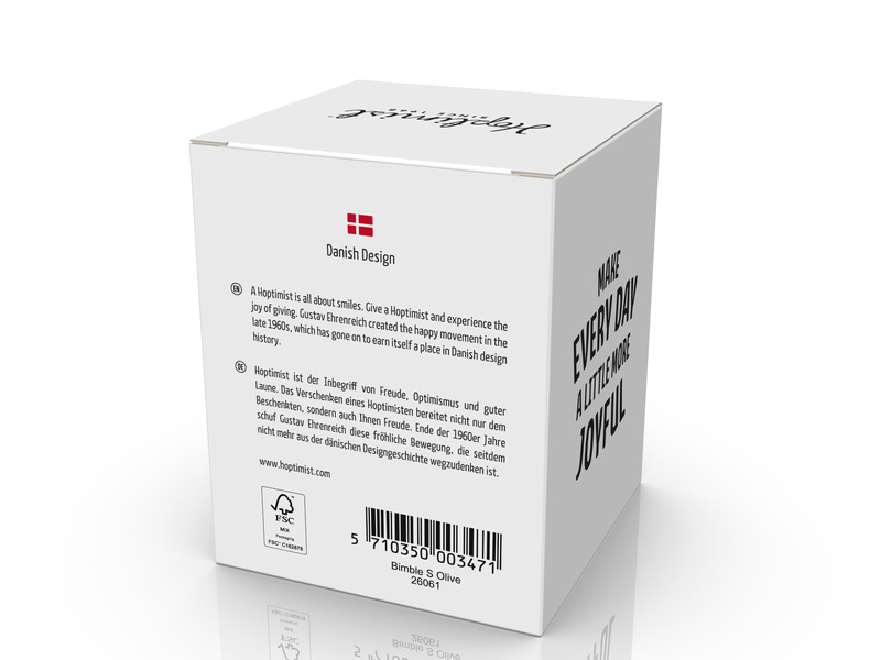 Większość uśmiechów zaczyna się od innego uśmiechu. Hoptimist to kwintesencja uśmiechu, optymizmu i dobrego humoru, a swoimi jasnymi, wesołymi kolorami i okrągłą, harmonijną sylwetką rozsiewa radość wszędzie, gdzie się znajduje.