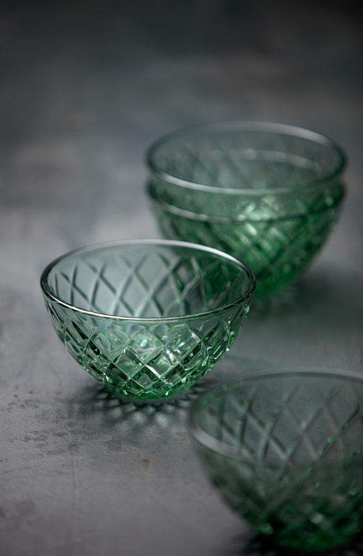 4 miski o średnicy 12 cm, wykonane z kolorowego szkła. Klasyczny design z eleganckimi fasetami, które odbijają światło i intensyfikują wrażenia wizualne, niezależnie od tego, czy serwujesz przekąski, pyszne dipy, czy pojedyncze porcje deseru. Doskonale sprawdzą się również jako pucharki na lody, miseczki na sałatki owocowe lub galaretki.