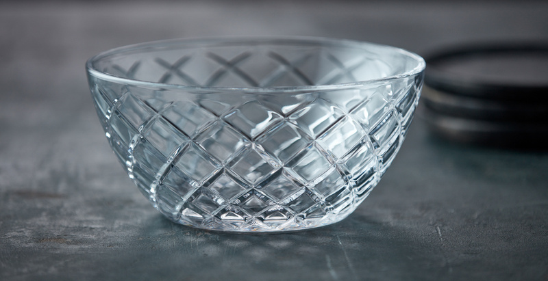 Klasyczny design z eleganckimi fasetami, które odbijają światło i intensyfikują wrażenia wizualne, niezależnie od tego, czy serwujesz sałatę, czy różnorakie owoce.
