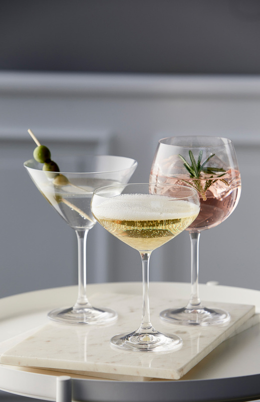 Klasyczny kształt, długa, smukła nóżka w połączeniu z okrągłą i pojemną czaszą, zapewnia miejsce na kostki lodu lub inne dekoracje.