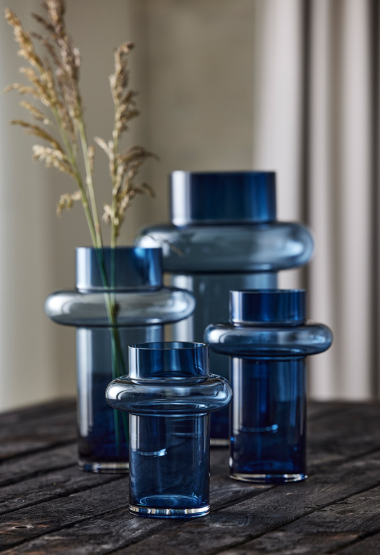 Produkt jest ręcznie wykonany z kolorowego szkła. Unikalny design sprawia, że wazon jest rzeźbą samą w sobie, a jego prosty i nowoczesny kształt będzie doskonałym tłem zarówno dla świeżych, jak i suszonych kwiatów.