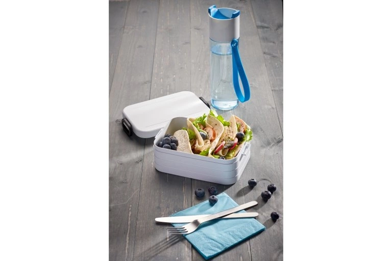 Nowoczesna butelka na wodę z serii Justwater holenderskiej marki Mepal to produkt, który przypadnie do gustu wszystkim osobom lubiącym aktywny tryb życia. Butelka idealnie sprawdzi się do wzięcia na siłownie, spacer, do pracy czy na wycieczki. Butelka składa się z trzech części: - przezroczystego pojemnika na wodę wykonanego z wysokiej jakości tworzywa do złudzenia przypominającego szkło - zamontowanej na stałe górnej, białej części wewnątrz której znajduje się nakrętka - wystarczy ją delikatnie odkręcić aby się napić - paska/uchwytu ułatwiającego trzymanie butelki z ręce. Wszystkie produkty Mepal wolne są od BPA oraz wykonane z materiałów nieszkodliwych dla zdrowia. Bidon nadaje się do mycia w zmywarce. Wymiary butelki: Średnica: 7,2 cm Wysokość: 23,3 cm
