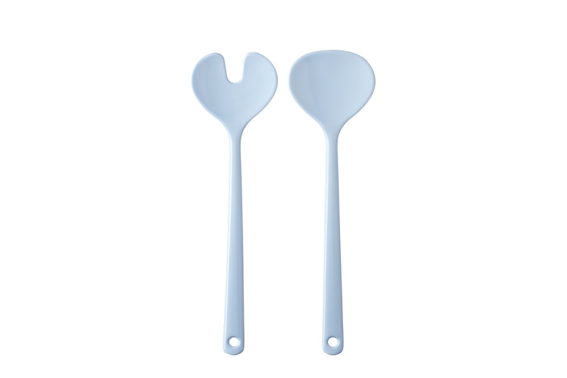 Ten 2-częściowy zestaw sztućców składa się z dużej łyżki do serwowania i widelca i idealnie pasuje do miski do sałatek Nordic Blue Synthesis 2,5 litra. Produkt wykonany z wysokiej jakości melaminy.