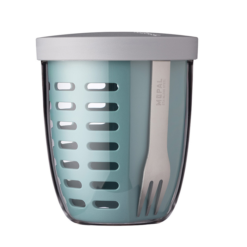 Idealne rozwiązanie na mały, czy duży apetyt. Szczelny pojemnik o pojemności 350ml pomieści przekąski, małą sałatkę, owsiankę, czy owoce. Zajmuje niewiele miejsca, zmieści się w torebce, torbie sportowej. Nadaje się do mycia w zmywarce. Wolny od BPA, wyprodukowano w Holandii.