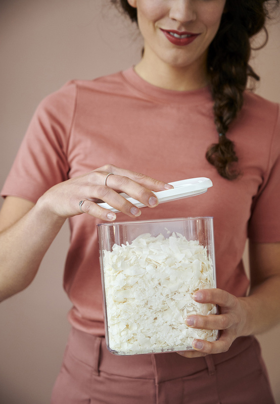 - Szczelna pokrywa zapobiega rozproszeniu zapachów na inne produkty.