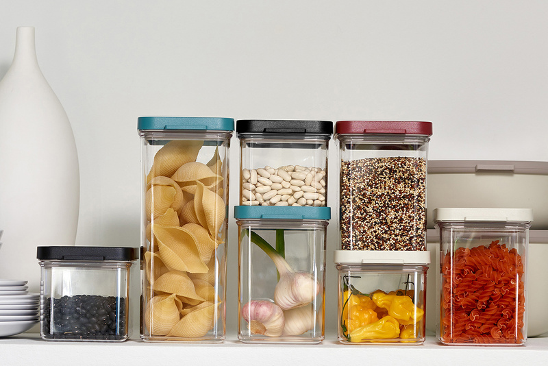 Przezroczyste ścianki pozwalają kontrolować zawartość bez konieczności otwierania pojemnika. Możliwość piętrowego ułożenia pomaga zaoszczędzić i zagospodarować miejsce w lodówce czy też szafce kuchennej.