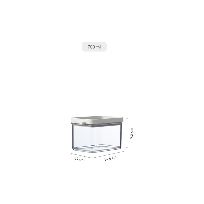 Przezroczyste ścianki pozwalają kontrolować zawartość bez konieczności otwierania pojemnika. Możliwość piętrowego ułożenia pomaga zaoszczędzić i zagospodarować miejsce w lodówce czy też szafce kuchennej.