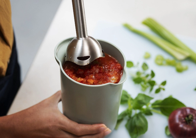 - Wygoda i bezpieczeństwo: Ergonomiczny uchwyt oraz antypoślizgowa podstawa gwarantują pewny chwyt i stabilność, co zmniejsza ryzyko przewrócenia naczynia podczas mieszania.