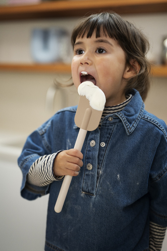 Szpatułka idealnie nadaje się do mieszania ciast, ubitych mas czy sosów, a także do dokładnego zeskrobywania mikstur z misek lub innych naczyń. To rozwiązanie, które minimalizuje marnowanie składników, umożliwiając pełne wykorzystanie każdej porcji. Przedmiot pewnie leży w dłoni, co przekłada się na precyzję i wygodę podczas przygotowywania posiłków.