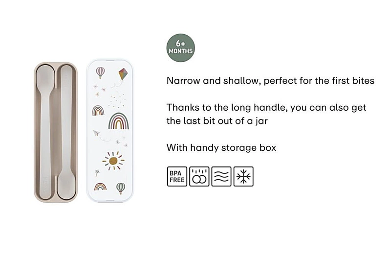 • Wąska i płaska końcówka — Umożliwia precyzyjne podawanie jedzenia, idealnie dopasowane do delikatnych buziek.