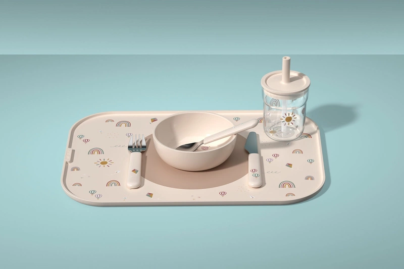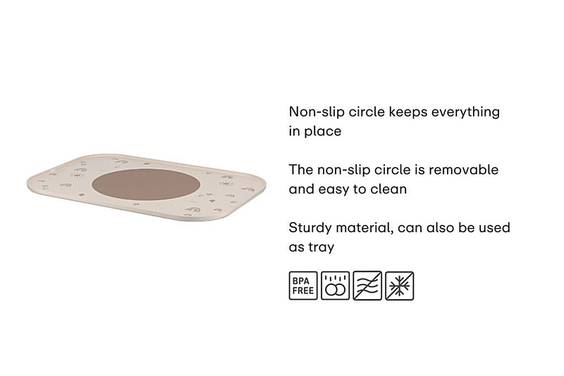- Antypoślizgowy pierścień – dzięki temu rozwiązaniu talerzyk lub miseczka pozostają stabilnie na miejscu, minimalizując bałagan i frustrację podczas jedzenia.