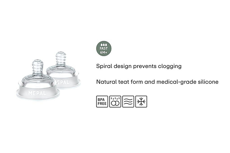 Smoczki do butelek Mepal Mio – zestaw 2 sztuki, szybki przepływ