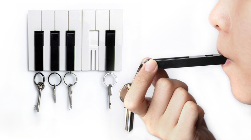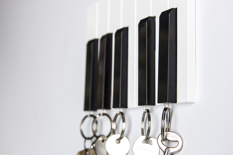 Poznaj ten ciekawy wieszak na klucze Piano z zestawem aż 5 breloków w kształcie klawiczy pianina. Każdy z nich posiada wbudowany gwizek, pomocny w nagłych wypadkach. Po powrocie do domu, umieść klawisze na klawiaturze fortepianu.