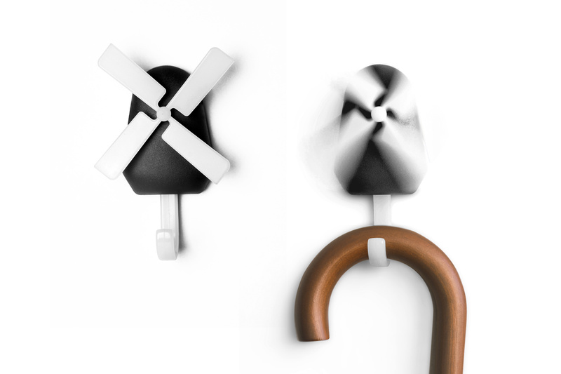 Ten mały wiatrak cię zdmuchnie! Za każdym razem, gdy zawiesisz przedmiot na haku, wiatrak zacznie się obracać, wskazując, że przedmiot jest bezpiecznie na haku.