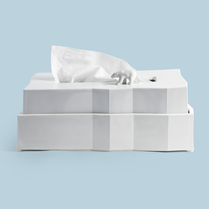 Pojemnik na chusteczki z wizerunkim polarnego niedźwiedzia.