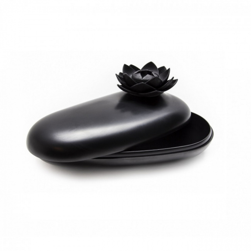 Pojemnik na drobnostki Qualy w kształcie kamyka z dekoracją kwiatu lotosu