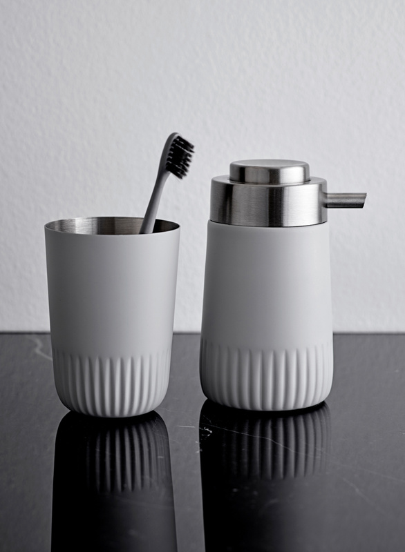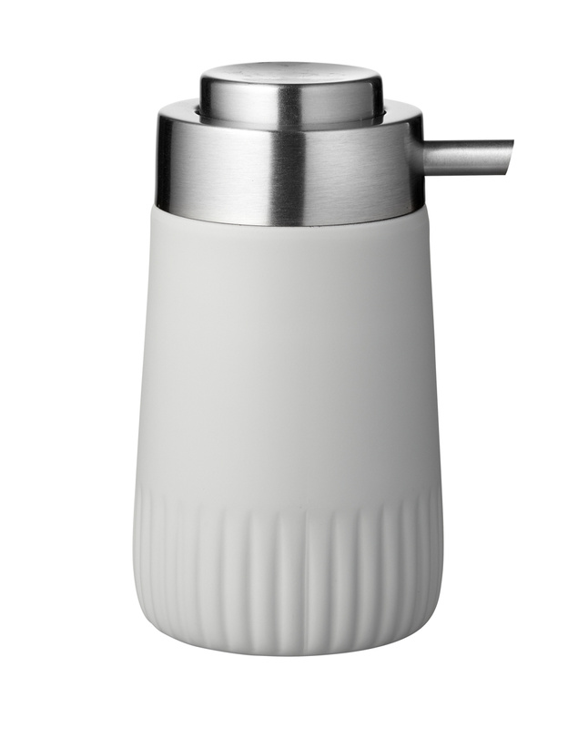 Minimalistyczny, industrialny, surowy design został przełamany karbowanymi wzorami, umieszczonymi na zewnętrznej powierzchni dozownika, które dodają mu charakteru i wyróżniają go spośród innych dyspenserów.